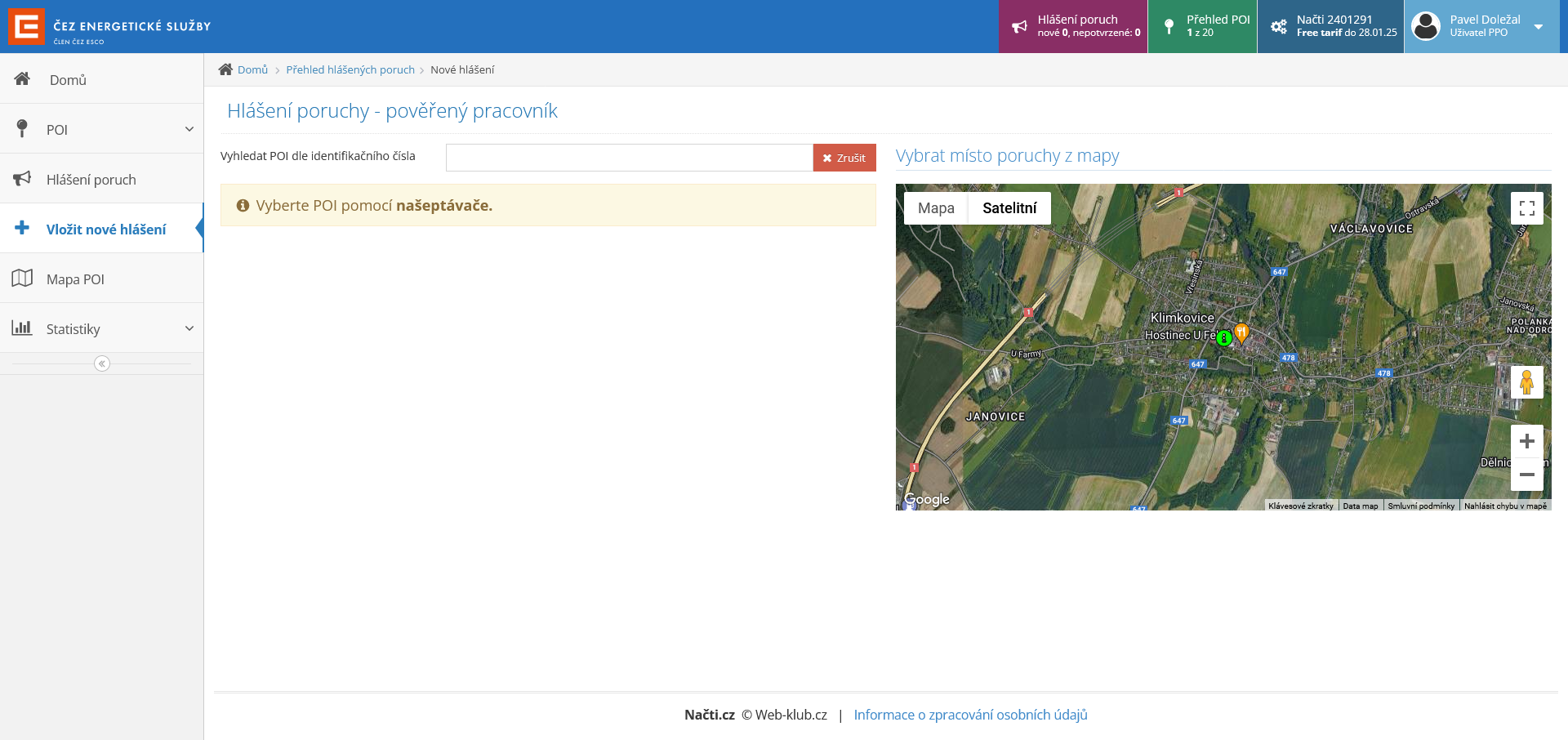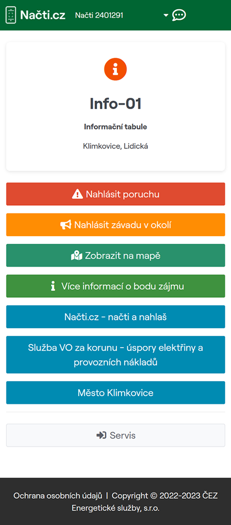 - V rozcestníku POI použijeme tlačítko „Nahlásit poruchu“.