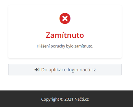 - Vyhodnotíme-li hlášení jako neopodstatněné, použijeme odkaz v e-mailu „Označit jako zamítnutá“.